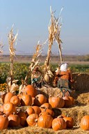 Pumpkin, hay bales, scarecrows, Fruitland, Idaho