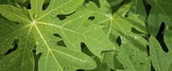 Raindrops on papaya tree leaves, La Digue, Seychelles