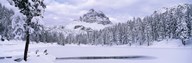 Trees along a frozen lake, Lake Antorno, Tre Cime Di Lavaredo, Dolomites, Cadore, Province of Belluno, Veneto, Italy