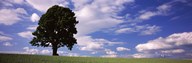 Tree in a field with woman walking along with balloons, Baden-Wurttemberg, Germany
