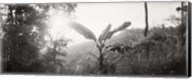 Sunlight through trees in a forest in black and white, Chiang Mai Province, Thailand