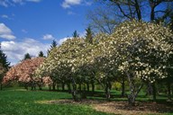 Row of Magnolia Trees Blooming in Spring, New York
