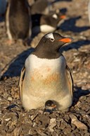 Antarctica, Cuverville Island, Portrait of Gentoo Penguin nesting.