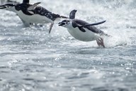 Antarctica, South Shetland Islands, Chinstrap Penguins swimming.