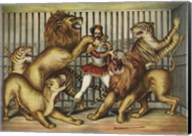 Lion Tamer in Cage with Lions and Tigers