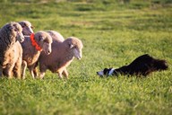 Purebred Border collie dog and Merino sheep