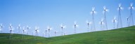 Wind turbines spinning on hills, Altamont Pass, Livermore, California, USA