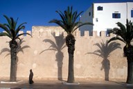 Man and Palm Shadows on Walled Medina, Essaouira, Morocco