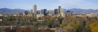 Skyscrapers in a city with mountains in the background, Denver, Colorado