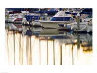 Boats Moored In Harbor At Sunset, Santa Barbara Harbor, California