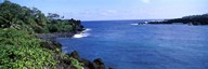 High angle view of landscape with ocean in the background, Wailua, Hana Highway, Hana, Maui, Hawaii, USA