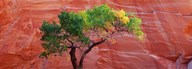 Low Angle View Of A Cottonwood Tree In Front Of A Sandstone Wall, Escalante National Monument, Utah, USA