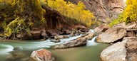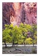 Cottonwood trees and rocks along Virgin River, Zion National Park, Springdale, Utah, USA