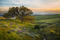 Balsamroot, Pine And Oak Trees On A Hillside, Washington State