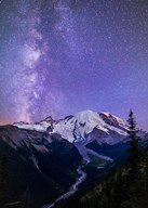 White River Valley Looking Toward Mt Rainier On A Starlit Night