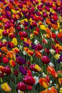 Wind Blows A Field Of Multi-Colored Tulips, Mount Vernon, Washington State