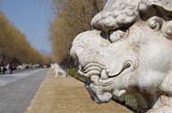 Carved statues of lion creature, Changling Sacred Way, Beijing, China