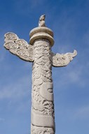 China, Beijing, Forbidden City. Emperors palace, carved pillar.
