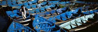 High angle view of boats docked at a port, Essaouira, Morocco