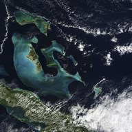 Satellite view of the Bahama Islands in the Atlantic Ocean