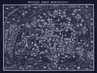 1920 Pocket Map of Paris Blueprint style