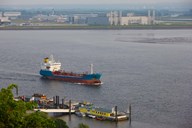 Elbe River and airbus factory, Blankenese, Hamburg, Germany