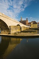 Bridge across the river, Steinerne Bridge, Danube River, Regensburg, Bavaria, Germany