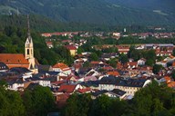 High angle view of buildings in a town, Bad Tolz, Bavaria, Germany