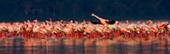 Flamingos landing, Kenya
