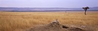 Cheetah (Acinonyx jubatus) sitting on a mound looking back, Masai Mara National Reserve, Kenya