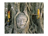 Buddha head in tree roots, Wat Mahathat, Ayutthaya, Thailand