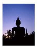 Silhouette of Buddha and temple during sunset, Sukhothai, Thailand