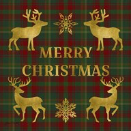 Merry Christmas Plaid - Gold Deer
