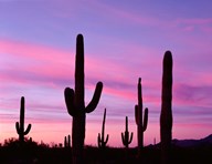 Arizona, Saguaro Cacti Silhouetted By Sunset, Ajo Mountain Loop