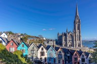 Deck Of Card Houses With St Colman's Cathedral In Cobh, Ireland