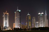 Night View of Highrises, Shanghai, China