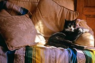 Tuxedo Cat Sitting On Sofa