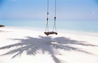 Beach swing and shadow of palm tree on sand