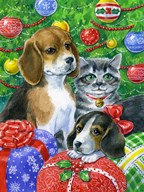 Puppies and Kitten Under the Tree