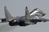A Bulgarian Air Force MiG-29 aircraft taking off over Bulgaria