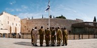 Israeli soldiers being instructed by officer in plaza in front of Western Wall, Jerusalem, Israel