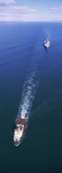 Aerial view of a battleship being towed in the sea, USS Iowa (BB-61), Rhode Island Sound, Rhode Island, USA