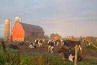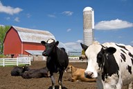 Cows, red barn, silo, farm, Wisconsin