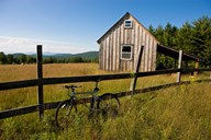 Mountain bike and barn on Birch Hill, New Durham, New Hampshire