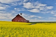 Red Barn In Canola Field Near Genesee, Idaho,