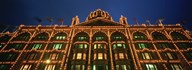 Low angle view of a building lit up at night, Harrods, London, England