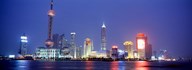 Buildings lit up at dusk, Shanghai, China