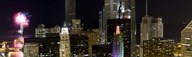 Skyscrapers and firework display in a city at night, Lake Michigan, Chicago, Illinois, USA