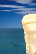 Person on Cliff Top, Tunnel Beach, Dunedin, New Zealand