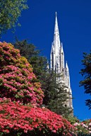 Rhododendrons and First Church, Dunedin, New Zealand